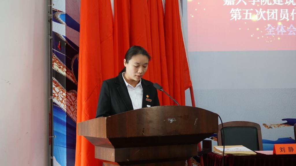 团委负责人刘静为大会致开幕辞。随后校团委副书记张婧嫄做了重要讲话。她首先代表校团委对大会的召开表示热烈的祝贺,向莅临指导的领导和来宾表示热烈的欢迎,向在共青团工作战线上作出辛勤努力的全体同志们表示由衷的感谢,向出席会议的全体代表和全院广大团员青年致以亲切的问候!张婧嫄同时也代表校团委向建工学院共青团工作者和广大团员青年提出了以下希望:一是进一步发挥引领作用,以习近平新时代中国特色社会主义思想为指引,积极构筑青年学子的共同理想;二是进一步强化探索意识,推进学院团组织改革,积极开创共青团工作的新局面;三是进一步增强创新精神,围绕青年学子的成长,努力创造繁荣的校园文化氛围。她希望新一届团委,一定要不负使命,勇担重任,发扬建工学院的优良作风,以饱满的精神状态和旺盛的工作热情,继续团结和带领全院广大青年,真抓实干,勇于创新,为实现两个一百年而不懈奋斗!