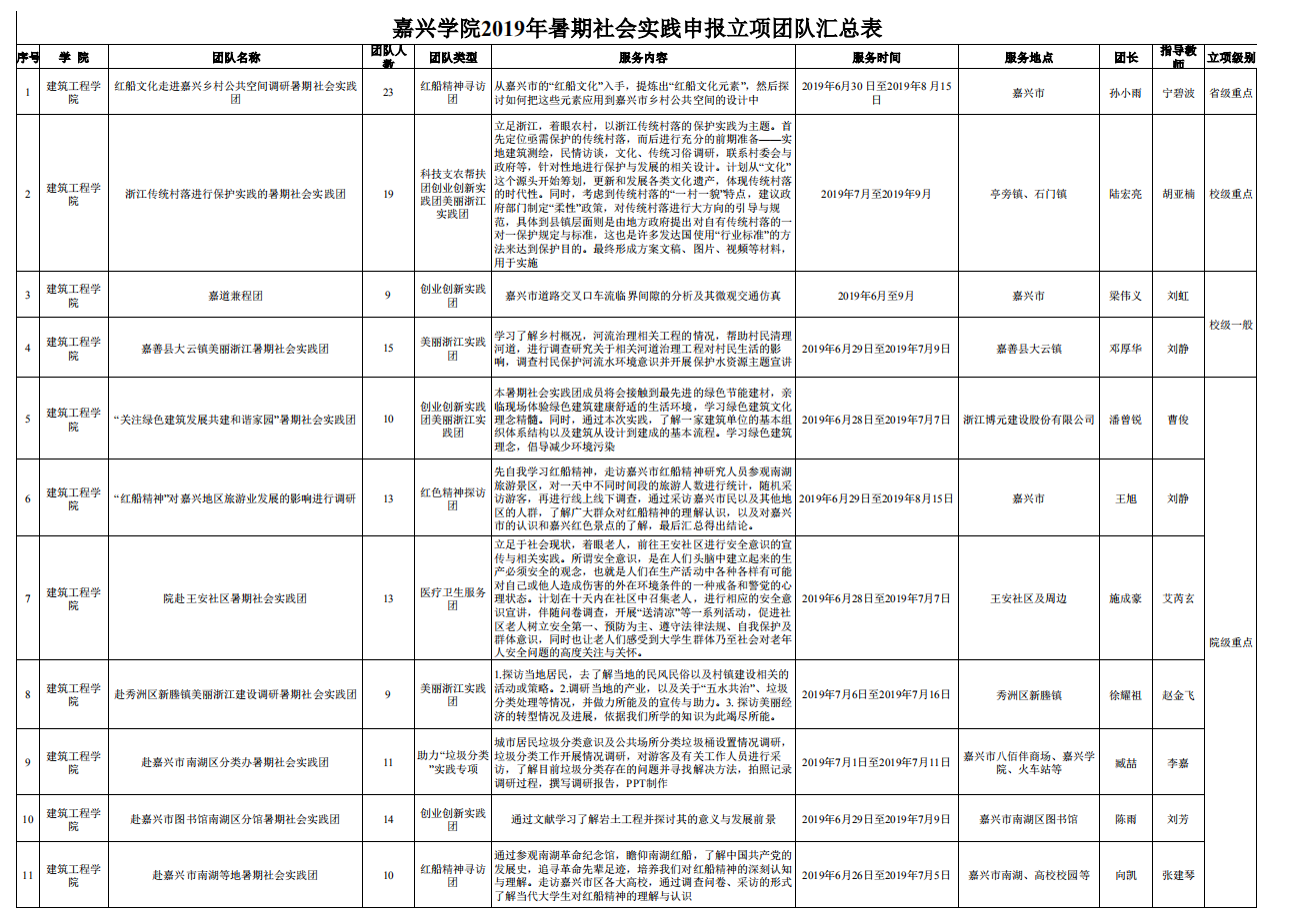 各团支部,2019年“三下乡”活动暑期集中性社会实践活动立项评审现已结束,此次活动院团委共收到立项申报书13份,内容涵盖创新创业类、环境保护类、社会服务类等,经校院两级团委评审,拟定11项予以立项,现将结果公示如下: