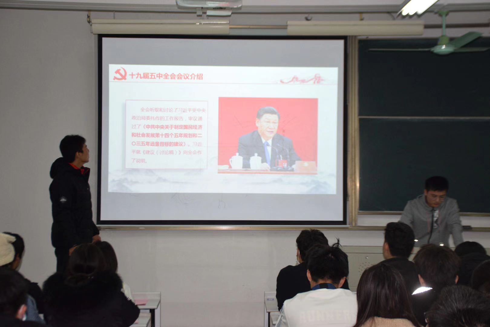 团委于2020年11月24日,在越秀校区教二B405组织召开了“团学干部学习贯彻党的十九届五中全会精神”专题会议,学院团委副书记洪前亮主持会议及领学,团委、学生会、青协全体成员参加了会议。