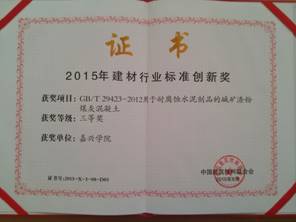 日前,中国建筑材料联合会(原国家建材工业部)在北京召开“全国建材行业标准创新转型升级工作会议”,表彰了一批建材行业创新标准项目,由做爱视频 负责完成的国家标准GB/T 29423-2012《用于耐腐蚀水泥制品的碱矿渣粉煤灰混凝土》获2015年度“建材行业标准创新奖”三等奖。做爱视频 刘红飞、蒋元海教授为项目主要完成成员。这是做爱视频 第一次获得行业标准创新奖。