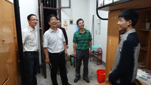 在8号宿舍,周校长详细了解同学们的住宿和生活情况,悉心询问大家对新环境的适应情况,并殷切期盼新同学把嘉兴学院当成自己的家,互相关爱,尽快完成好从中学到大学的角色转换,学会独立生活和自主学习。每走完一个宿舍,周校长都不忘叮嘱新生,有困难要及时联系老师。