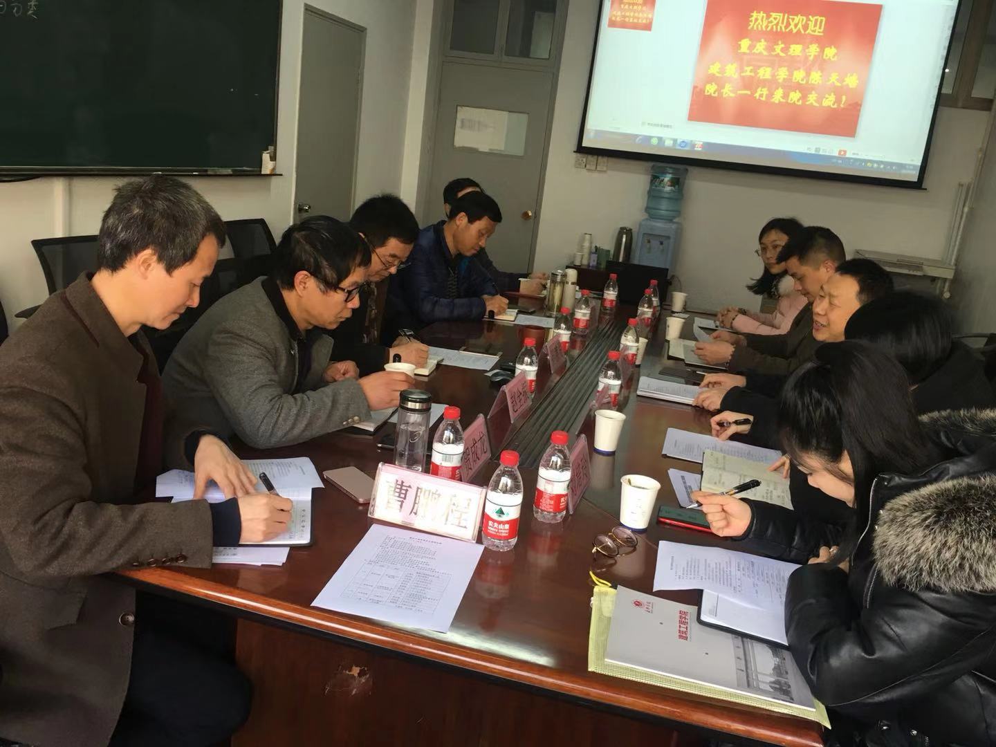 3月8日,重庆文理学院做爱视频 陈天培院长一行5人来建工学院调研工程管理专业认证情况。建工学院孙德发副院长率工管系、土木系、实验中心负责人参加座谈会。