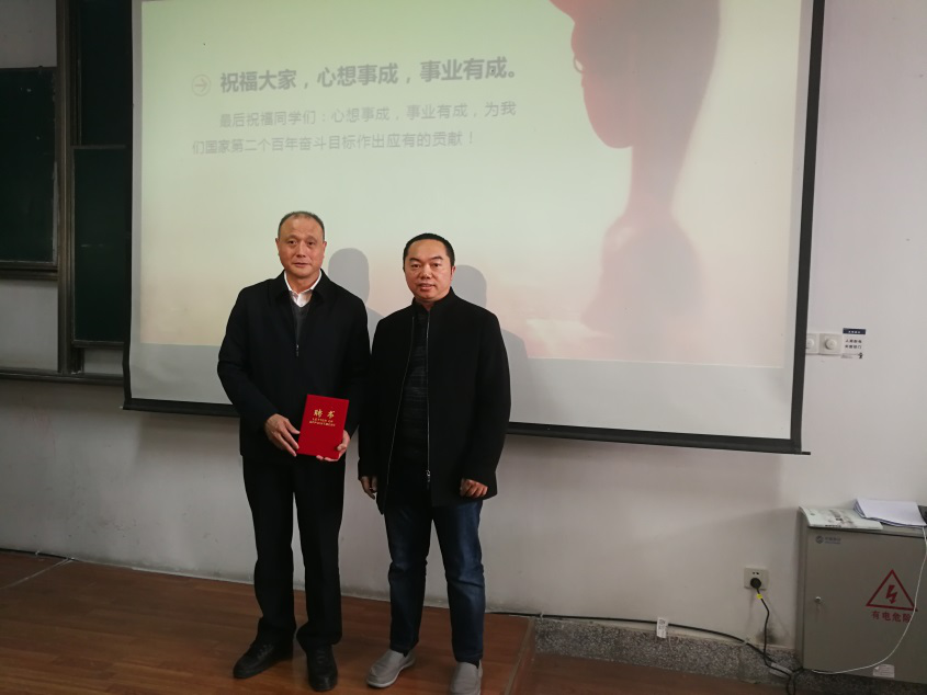 客座教授,并受邀做“诚信做人,诚实做事”的大学生职业生涯规划专题讲座。讲座由建环系主任阳季春老师主持。