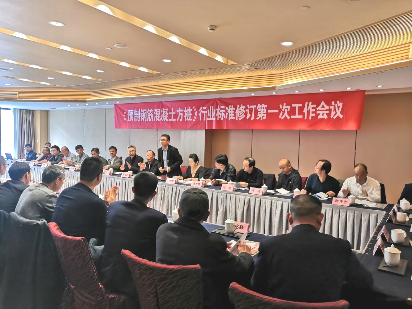 蒋元海教授作了标准项目申报、标准修订前期工作及计划、标准参与单位的工作分工、标准调研、拟标准修订项目等内容的汇报,并宣布标准编制组名单。随后,会议代表对《预应力混凝土薄壁管桩》《预制钢筋混凝土方桩》两项行业标准修订工作进行了热烈讨论,对两项标准的修订工作提出了宝贵建议。
