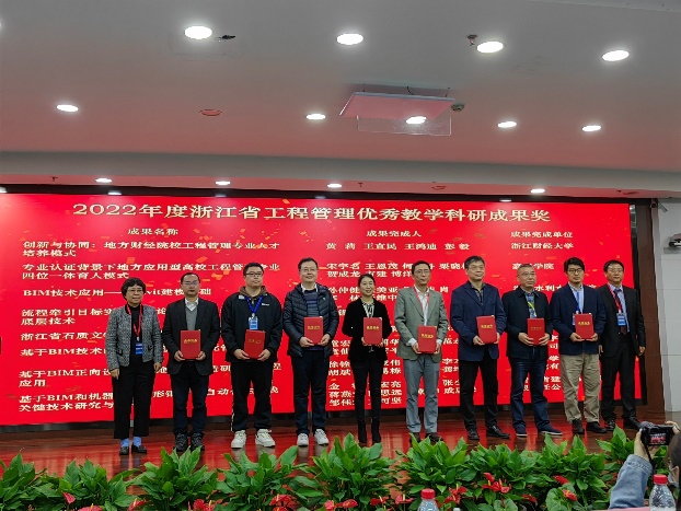 为了促进浙江省工程管理领域的科学研究和教学实践发展,本次论坛首次设立了浙江省工程管理优秀教学和科研成果奖,工程管理系主任宋宇名老师代表嘉兴学院申报《专业认证背景下地方应用型高校工程管理专业四位一体育人模式》的教学成果报告获得2022年度浙江省工程管理优秀教学成果奖。同时,本次论坛还举行了第五届浙江省大学生智能建造与管理创新竞赛颁奖典礼。工程管理系庄天文老师带领的团队获得了二等奖的好成绩。