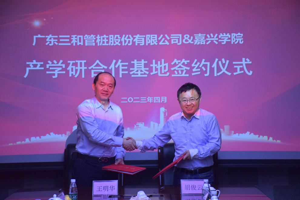 4月13日~15日,嘉兴学院党委委员、副校长(主持日常工作)胡俊云带队赴广东三和管桩股份有限公司开展校企合作交流并出席广东三和管桩股份有限公司-嘉兴学院共建产学研合作基地签约仪式。