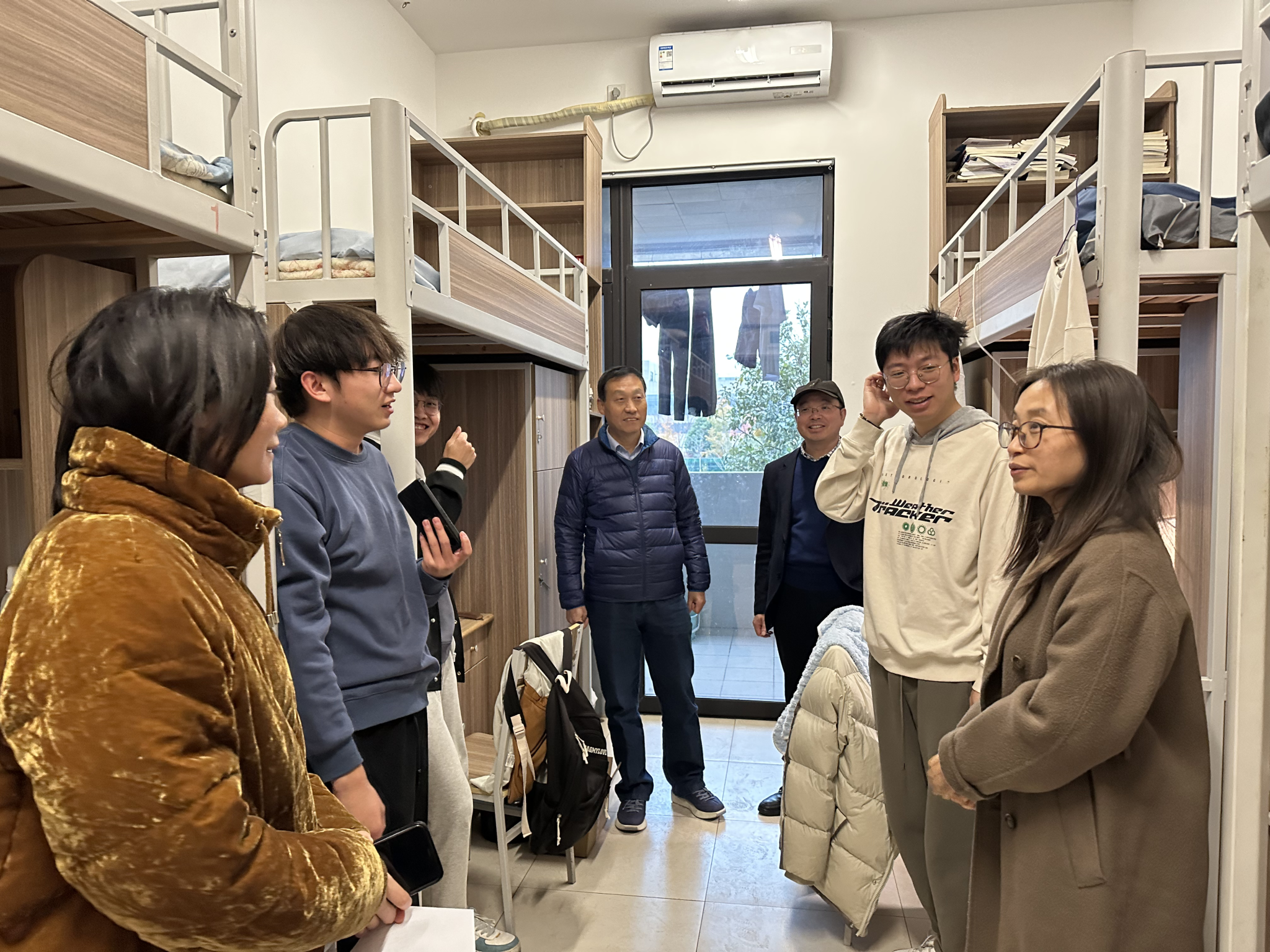 走访过程中,学院领导与同学们亲切交谈,鼓励毕业生同学及早就业,叮嘱备战考研的同学们在最后的时刻不要放弃,坚定信念,劳逸结合,保持良好的心态,以积极乐观的态度面对考试。关心大家是否在学业和生活上遇到困难,需要学院在哪方面提供帮助和支持。同时,注意防寒保暖,同时,学院领导一行还认真对寝室卫生及是否存在安全隐患,尤其是寝室用电及消防安全问题进行了检查,提醒同学们要增强安全意识。