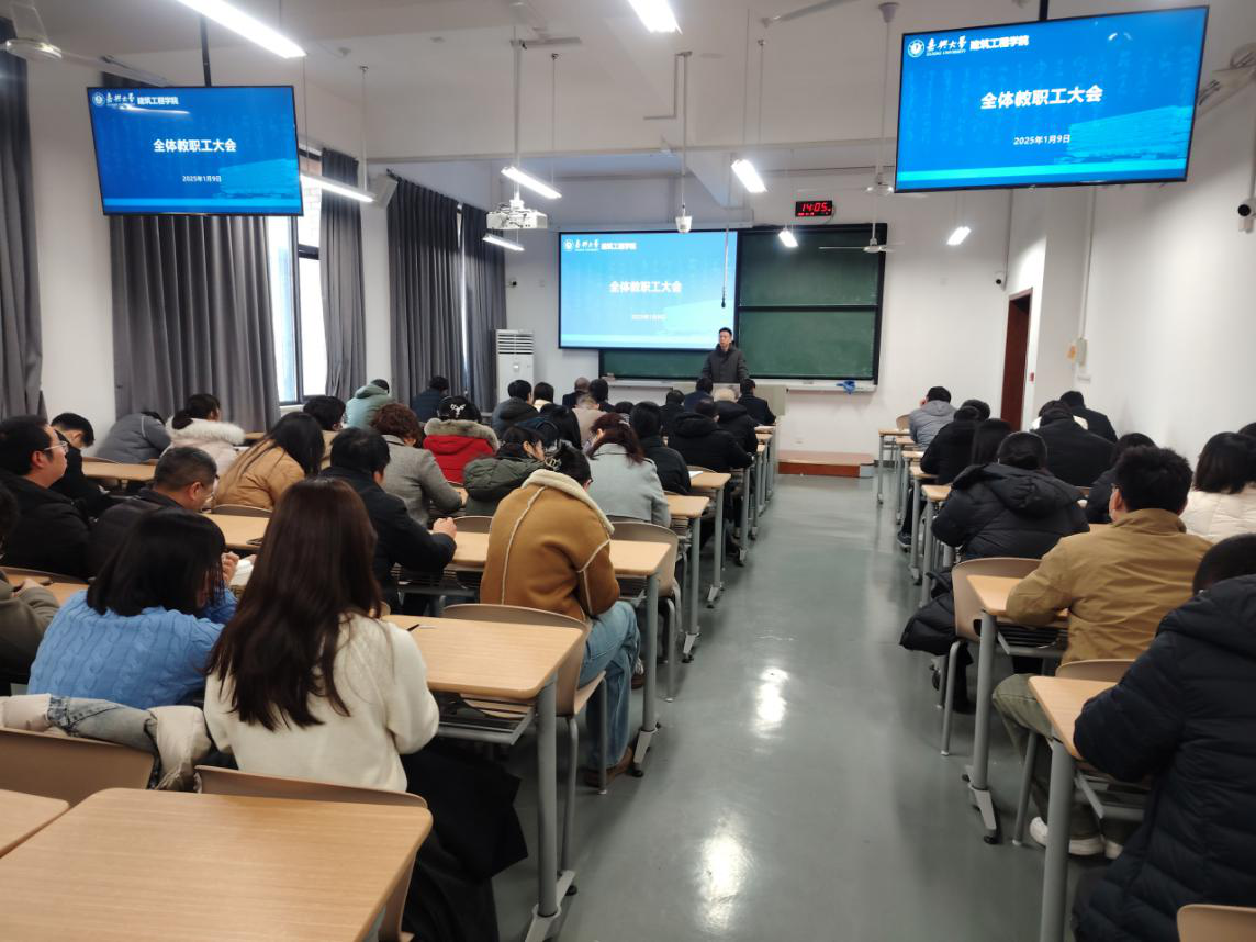在兴德楼北楼201教室召开全体教职工会议,旨在总结本年度工作成果,部署年终各项任务,并为来年的工作奠定坚实基础。此次会议由学院党委书记童勇军主持。