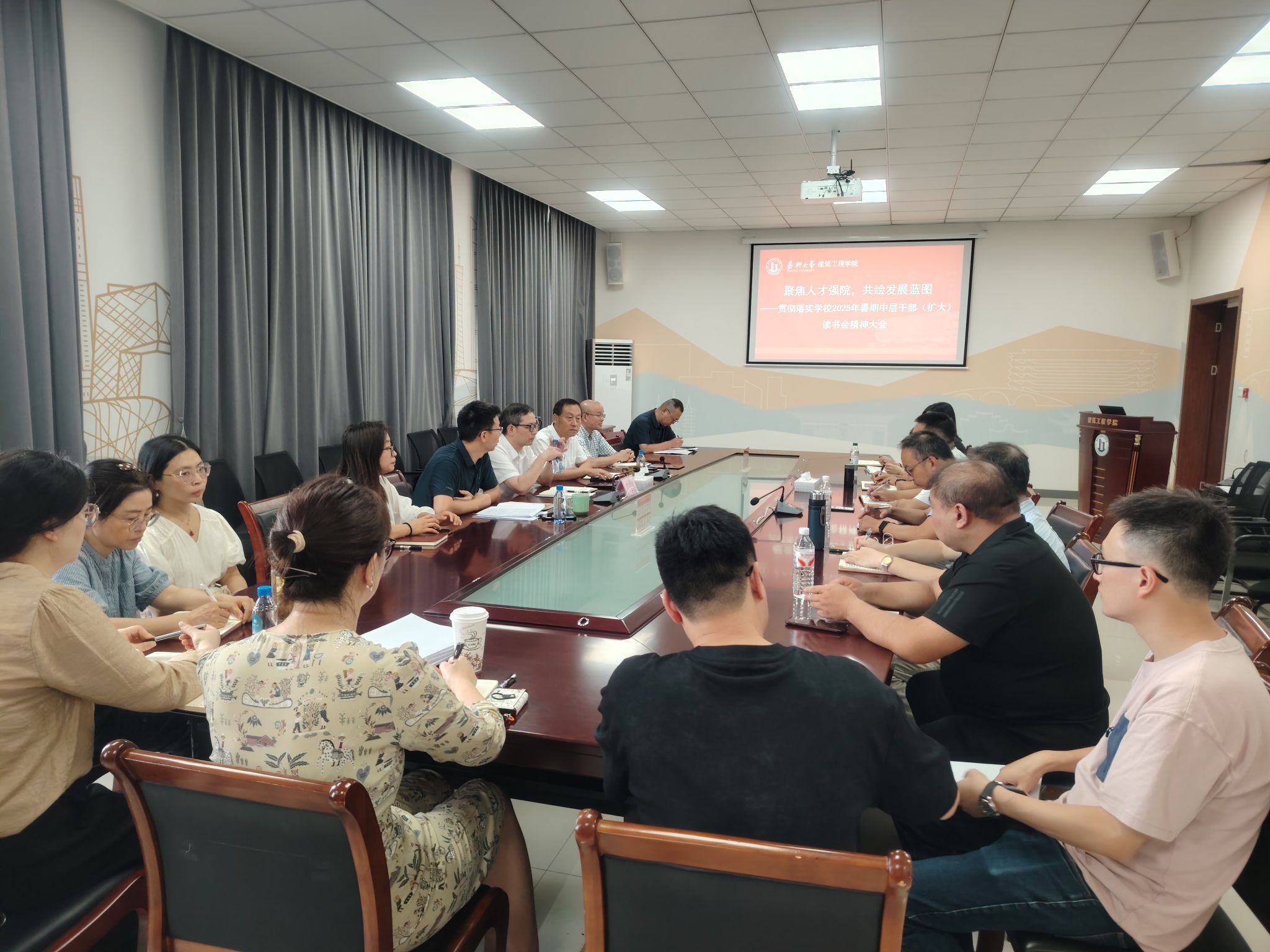 为了传达学习学校2025年暑期中层干部(扩大)读书会精神,9月 14日,学院召开“聚焦人才强院,共绘发展蓝图——学习贯彻学校暑期中层干部读书会精神研讨会”。周宏伟副校长到会指导,学院党政领导班子成员、学术院长,各系、研究所、综合办、学工办、实验中心等部门相关负责人出席。研讨会由党委书记童勇军主持。