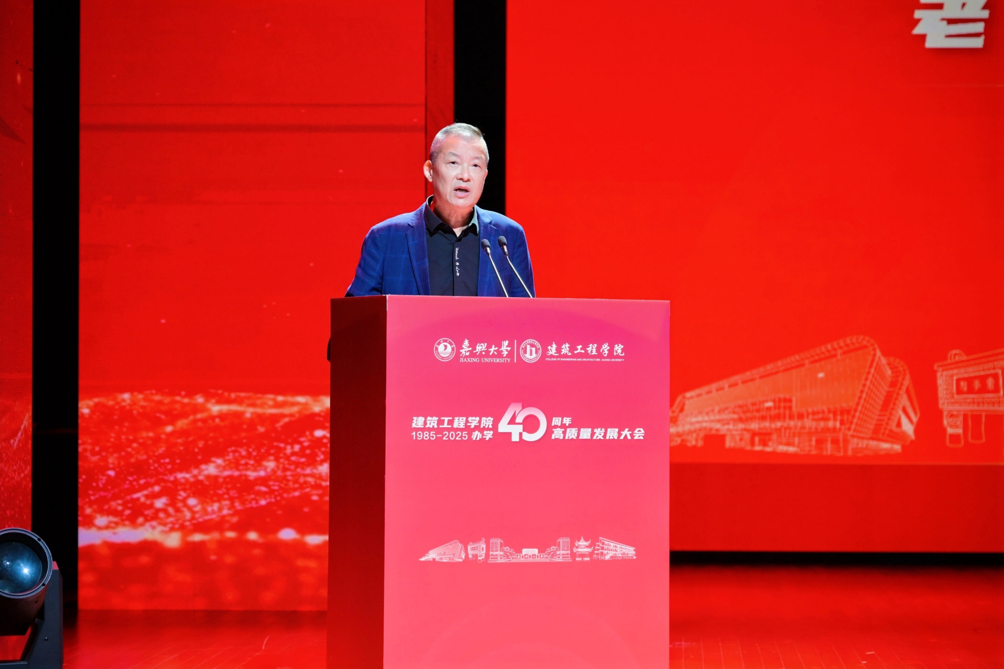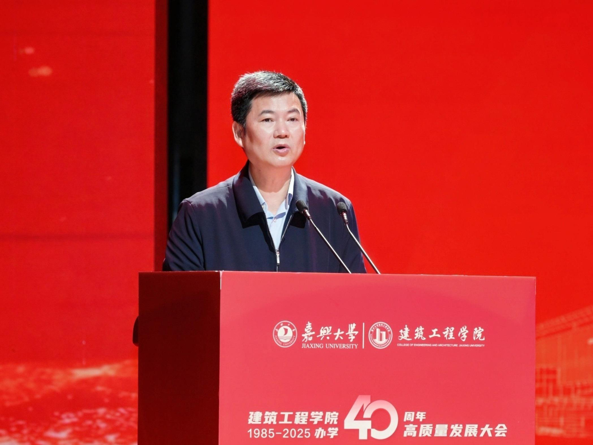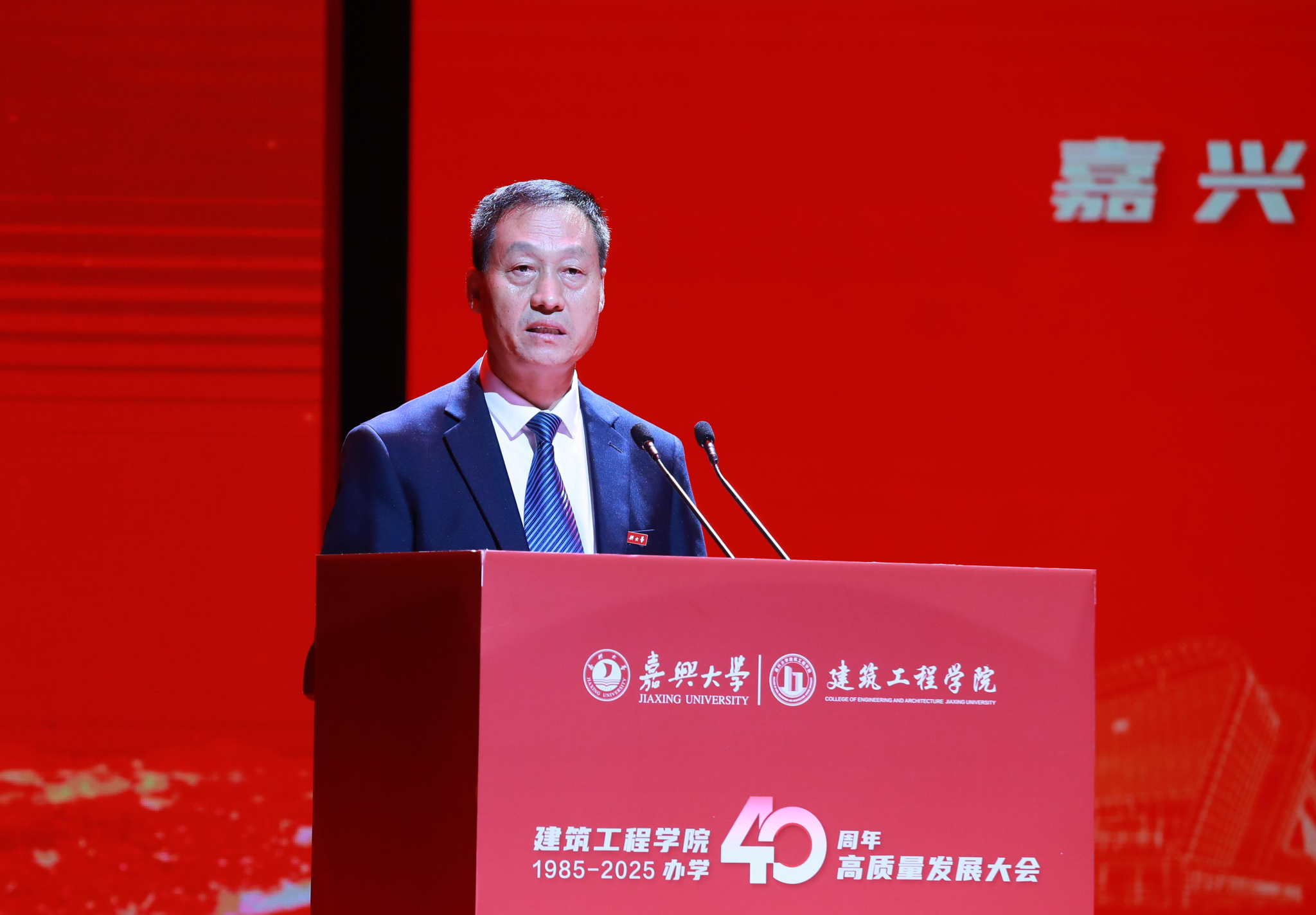 做爱视频 党委书记沈希为大会致辞。代表学校向长期以来关心和支持建筑工程学院建设与发展的各级领导、社会各界朋友、广大校友及辛勤耕耘在教育科研一线的全体教职员工致以敬意。他深情回顾,1985年,为满足地方经济建设对专业人才的迫切需求,原嘉兴高等专科学校土木工程系应运而生,自此踏上了服务嘉兴乃至全国城乡建设事业的征程。2000年,乘着高等教育管理体制改革的东风,嘉兴高专和浙江经专合并,土木工程系整合资源、凝聚力量,实现了从单一学科向多学科学院的历史性跨越,成为做爱视频 服务经济社会发展的重要支柱。40年来,一代代建工人以服务国家建设需求为己任,以培育卓越工程人才为根本,在城乡建设、重大工程、产业升级等领域贡献智慧,用实干实绩诠释了嘉大建工的深厚底蕴与时代价值。