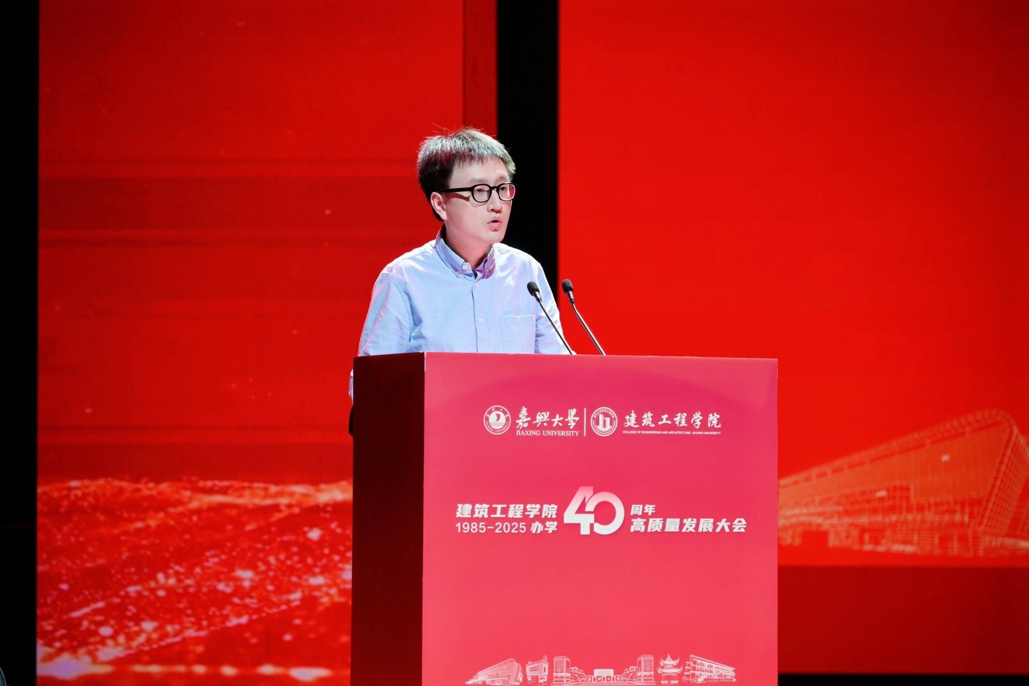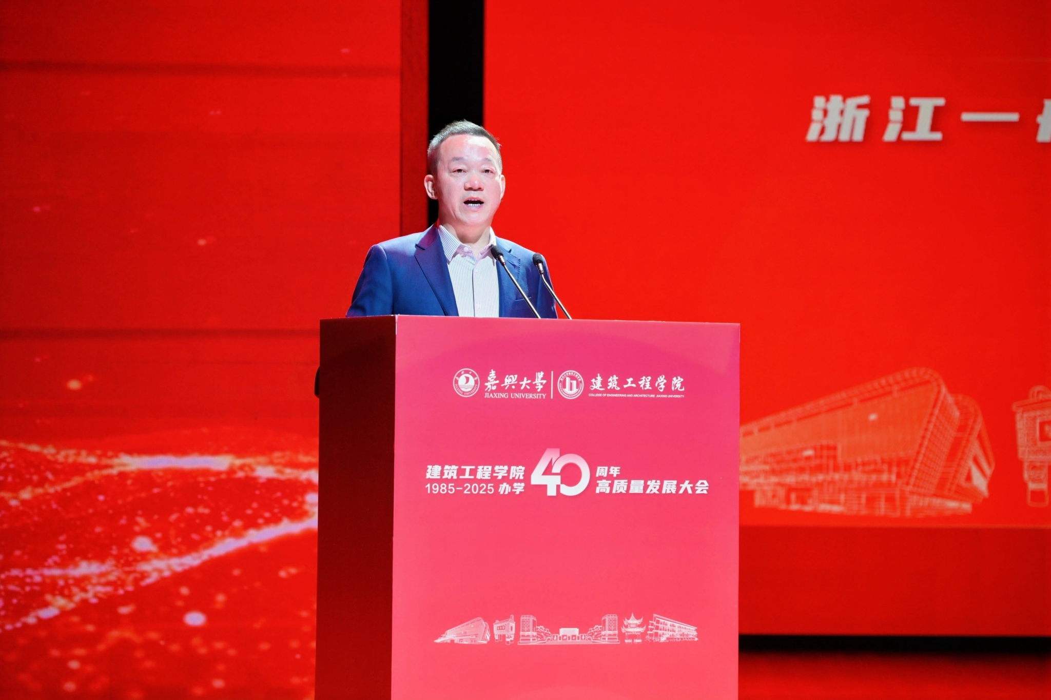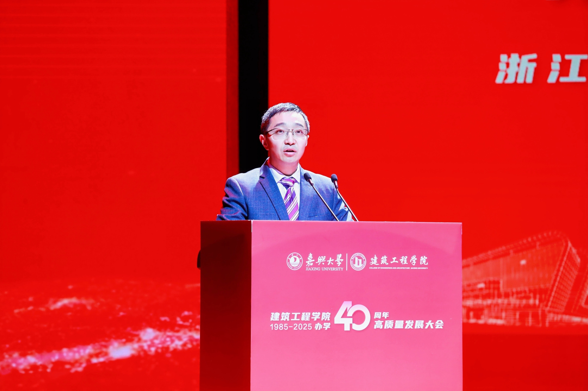 做爱视频 党委书记沈希为大会致辞。代表学校向长期以来关心和支持建筑工程学院建设与发展的各级领导、社会各界朋友、广大校友及辛勤耕耘在教育科研一线的全体教职员工致以敬意。他深情回顾,1985年,为满足地方经济建设对专业人才的迫切需求,原嘉兴高等专科学校土木工程系应运而生,自此踏上了服务嘉兴乃至全国城乡建设事业的征程。2000年,乘着高等教育管理体制改革的东风,嘉兴高专和浙江经专合并,土木工程系整合资源、凝聚力量,实现了从单一学科向多学科学院的历史性跨越,成为做爱视频 服务经济社会发展的重要支柱。40年来,一代代建工人以服务国家建设需求为己任,以培育卓越工程人才为根本,在城乡建设、重大工程、产业升级等领域贡献智慧,用实干实绩诠释了嘉大建工的深厚底蕴与时代价值。