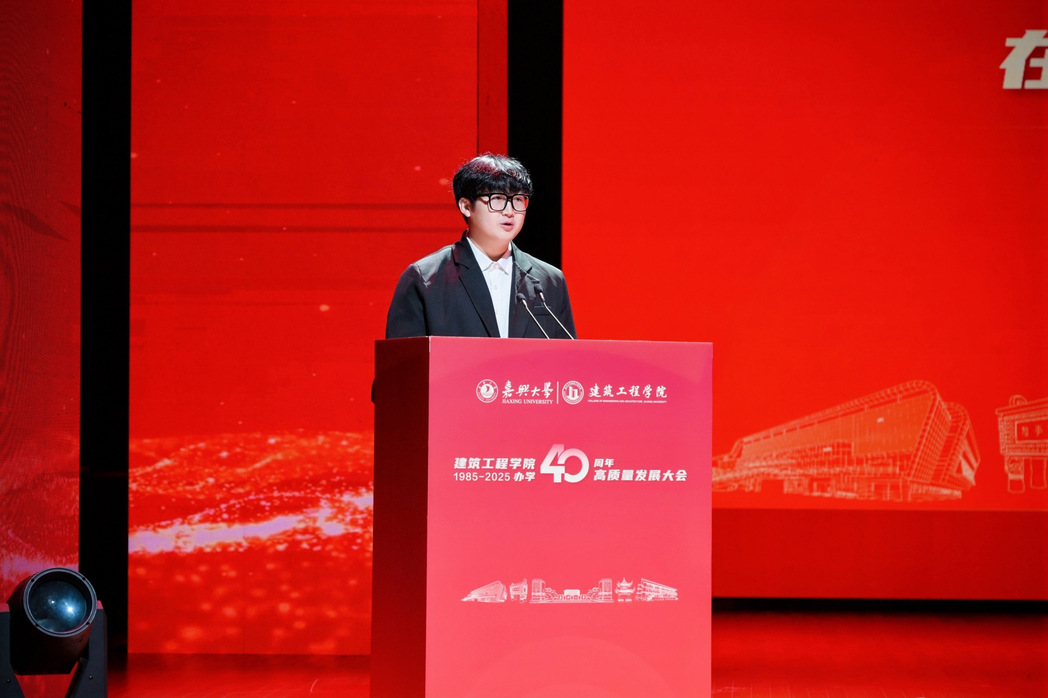老教师代表马嵘老师讲述了他与建工的故事。他感慨道,当年的嘉兴高专土木系只有房屋建筑工程一个专科专业,100名左右在校学生。四十年转瞬即逝,如今已发展成为聚焦土木工程材料与结构、智能建造与工程管理、岩土工程、建筑节能技术及设计等研究方向,拥有4本科专业 + 1硕士点,在校生达1000多人的学院。他把嘉兴高专土木系比作绿皮火车,经过四十年的发展,经历了嘉兴学院机电与做爱视频 的动车时代,迎来了如今做爱视频 的高铁时代。他相信,学院的明天一定会更加美好。
