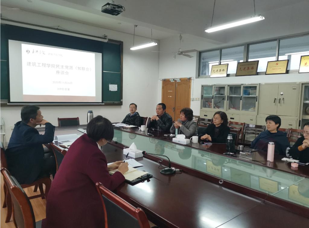 在319会议室召开民主党派(知联会)教师座谈会。会议由党委书记费锦和院长马嵘共同主持,建工学院民主党派(知联会)教师参加会议。