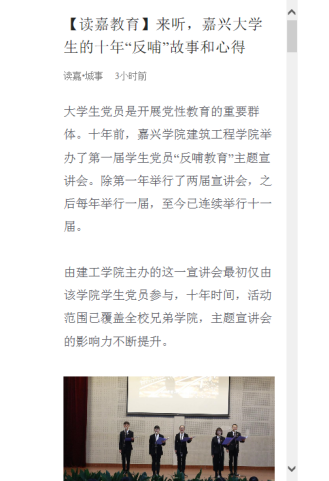 学生党员反哺教育宣讲活动。此外,“读嘉”平台也进行了同步报道。