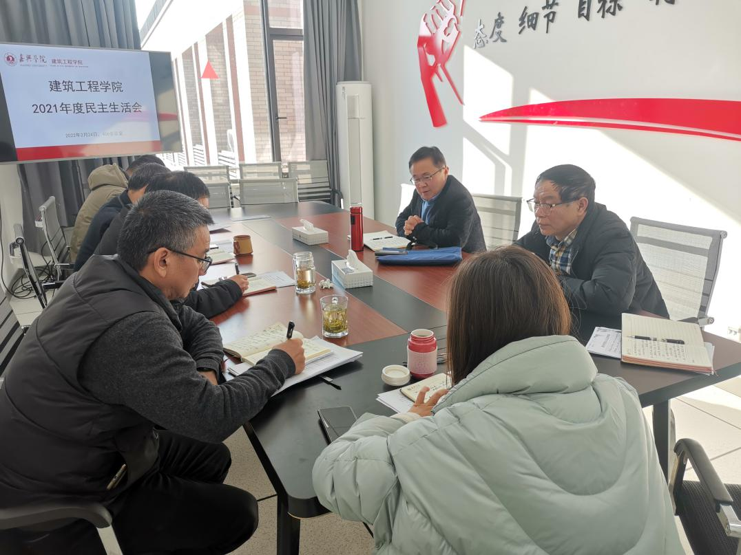 在406会议室召开2021年度领导班子民主生活会。副校长胡俊云到会指导,建工学院党政领导班子、党委委员参加会议。会议由党委书记姚民乐主持。