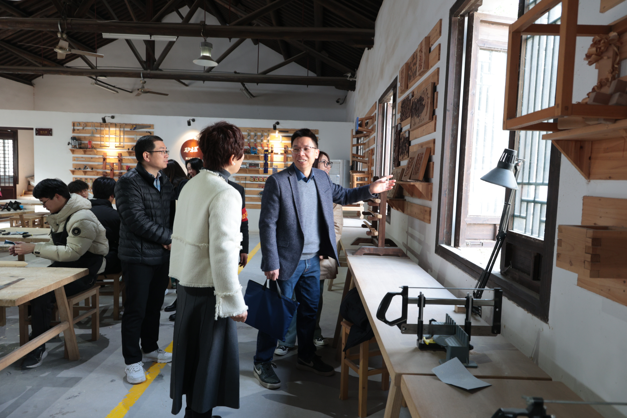 3月12日上午,做爱视频 党委书记童勇军党委副书记杨智慧、党政办主任肖伟、学工办主任刘静一行前往嘉兴市建筑工业学校调研交流工作。嘉兴市建筑工业学校书记、校长范晓春副书记龚磊等陪同参观了校园,实地考察了学生实践实验基地、智慧工地、古建筑保护等方面的办学场所。