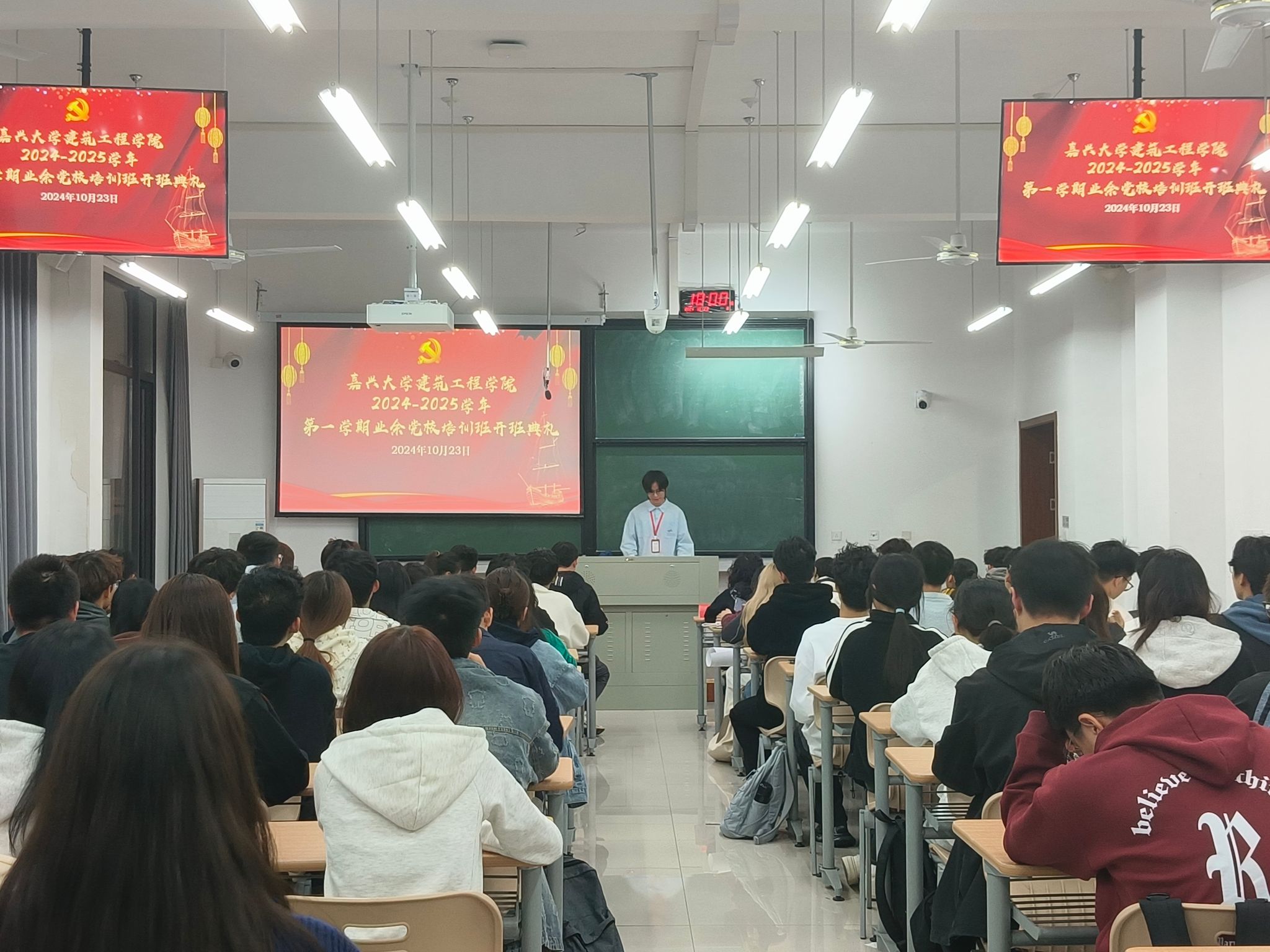 2024-2025学年第一学期业余党校开班典礼在厚德楼151举行,班主任俞纪良,建工学院党员之家主任沈光立、副主任高嘉昕、楼梦蝶,部门主任黄雨橙,王远洋及本期业余党校全体学员参加典礼。开班典礼由王远洋主持。