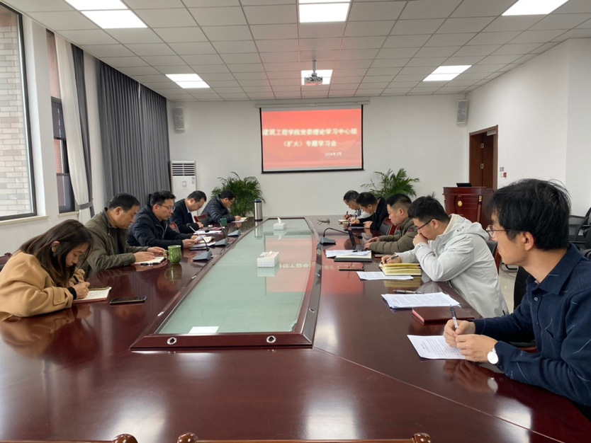 318上午建筑工程学院党委召开理论中心组扩大会议,专题学习全国两会精神。学院理论学习中心组成员,各党支部书记参加会议。党委书记童勇军主持会议并做中心发言。