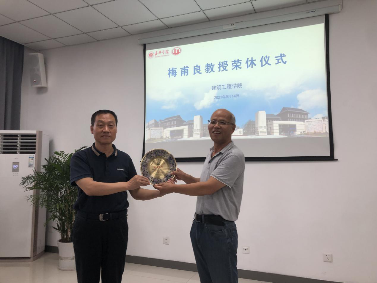 在荣休仪式上,姚民乐书记代表学院感谢梅教授多年来对学院工作的支持与无私奉献祝愿梅教授的退休生活他的歌声一样洋溢着快乐王恩茂院长为梅教授颁发荣休纪念品参加荣休仪式的老师们回忆往事在愉悦的气氛中对梅教授表达了不舍之情欢迎梅教授常回建工学院!
