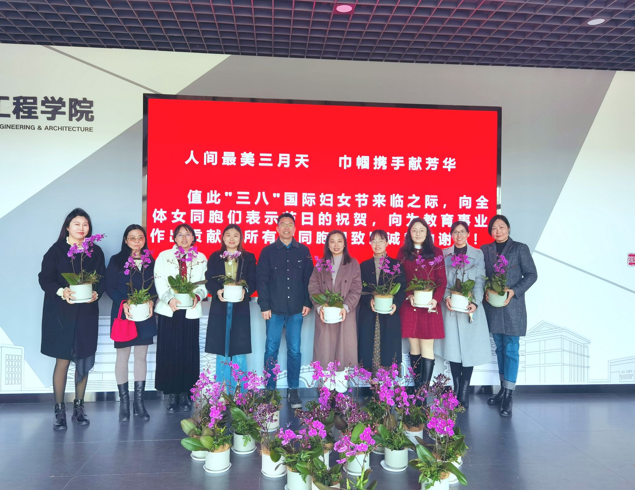 38日当天,学院分工会、妇委会还为女教职工准备了绿植盆花,学院党委书记童勇军、分工会主席杨智慧为女教职工送上了节日祝福,向为教育事业作出贡献的所有女同胞们致以诚挚的谢意!