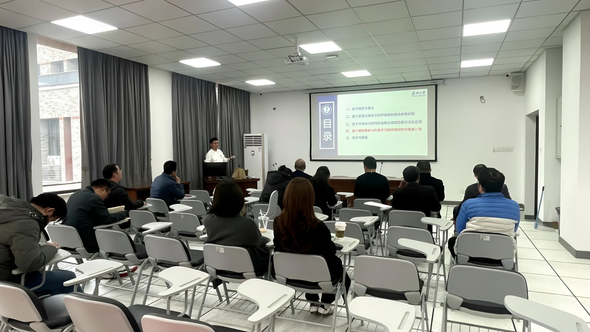 土木工程系李登国博士在兴德北楼402室作了一场题为《桥梁结构动力特性识别与模型更新方法研究》的学术报告。土木工程系全体教师参加了此次活动。