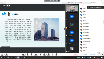 党委副书记杨智慧,学工办主任刘静,宏正工程设计集团股份有限公司、浙江耀厦控股集团有限公司、中煤浙江基础建设有限公司、浙江鸿翔建设集团股份有限公司、浙江省浙中地质工程勘察院有限公司、浙江省建工集团有限责任公司、中元建设集团股份有限公司、中交路桥华东工程有限公司8家用人单位,2022届部分毕业生。会议由刘静主持。