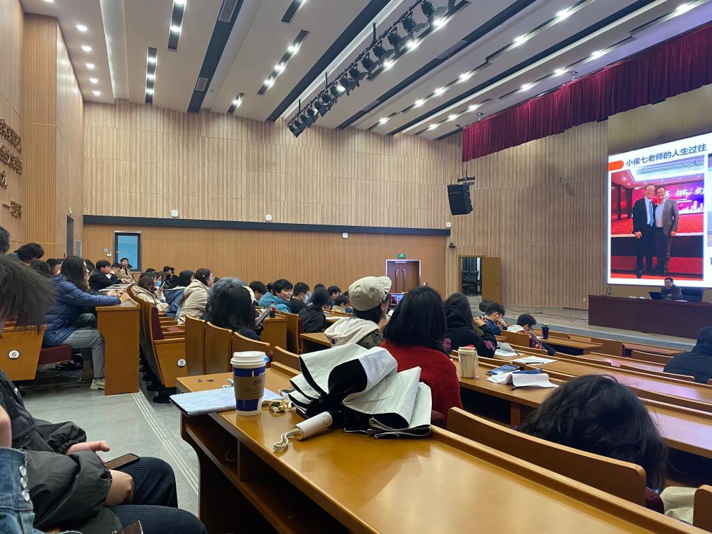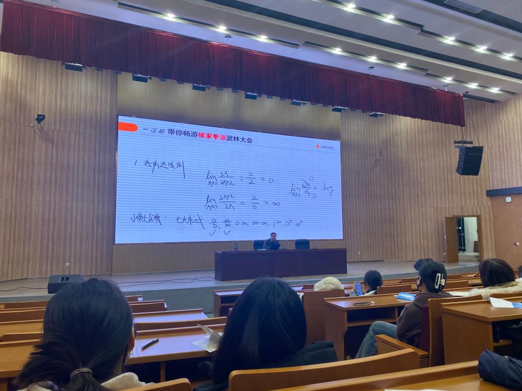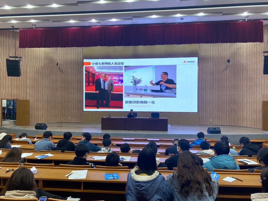 在行政楼一楼报告厅召开2020级考研动员大会,此次会议邀请了启航教育数学研究院院长、考研数学首席讲师小侯七。学院党委副书记杨智慧、就业辅导员庄峰及2020级全体学生参加了本次会议。