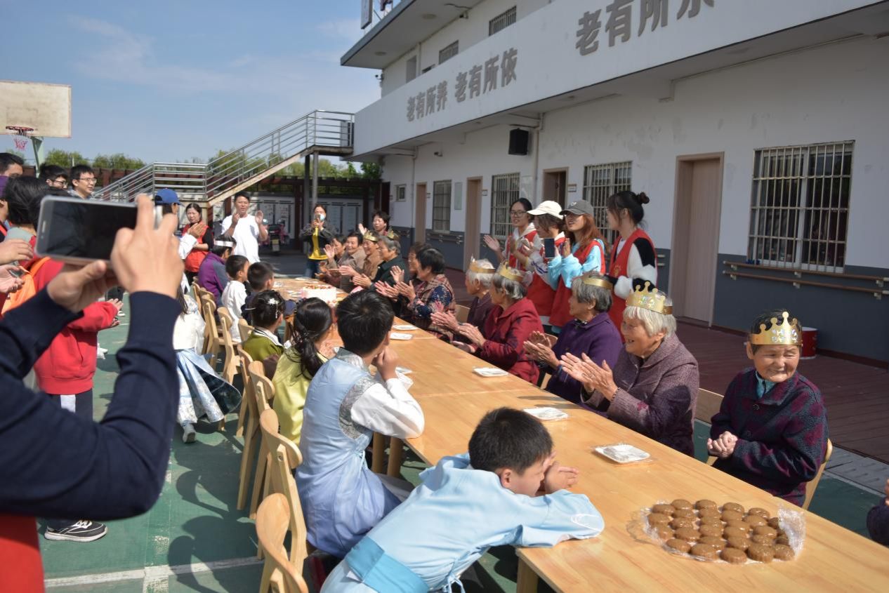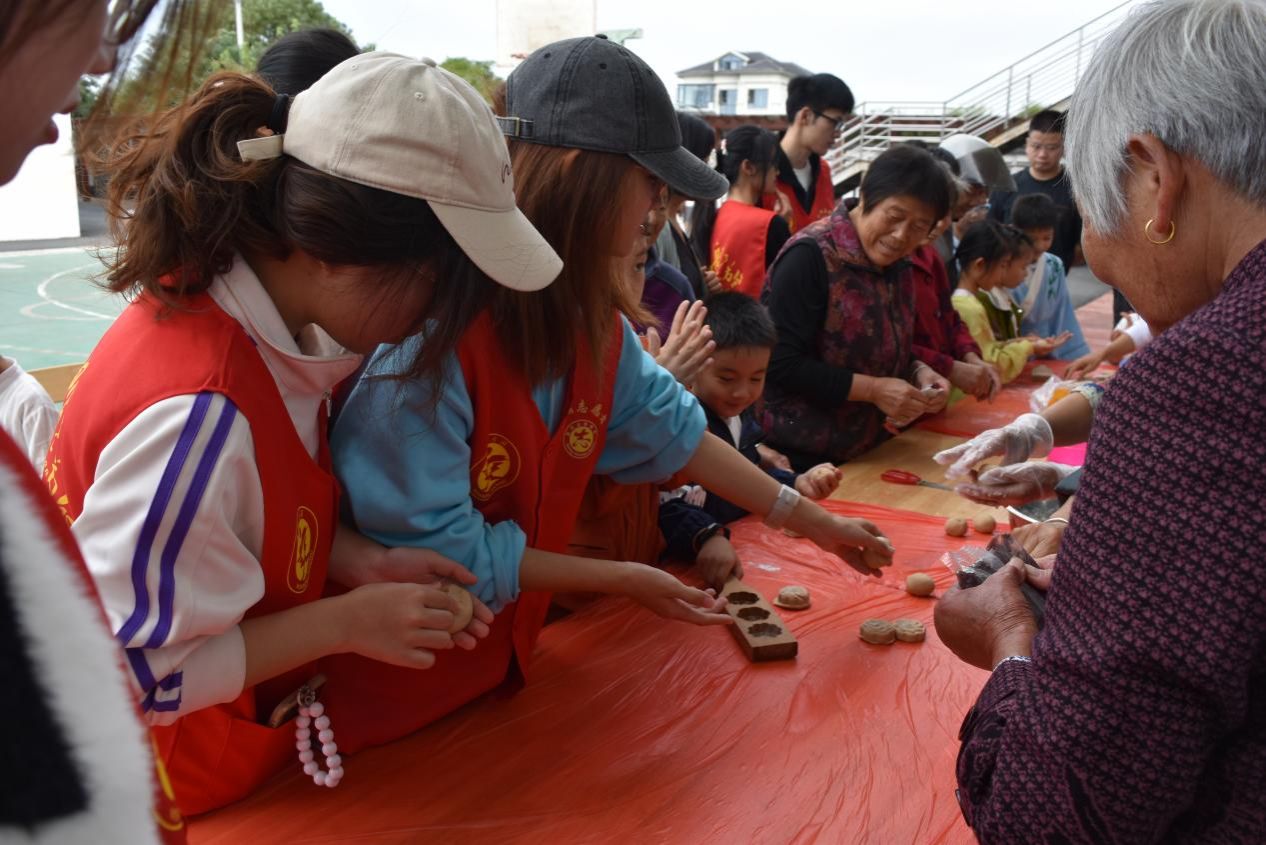 活动现场,志愿者们不仅与老人们一起制作了传统糖糕、送上寿桃蛋糕,庆祝重阳节,而且还为小学生们分享了重阳节来历和大学生活。