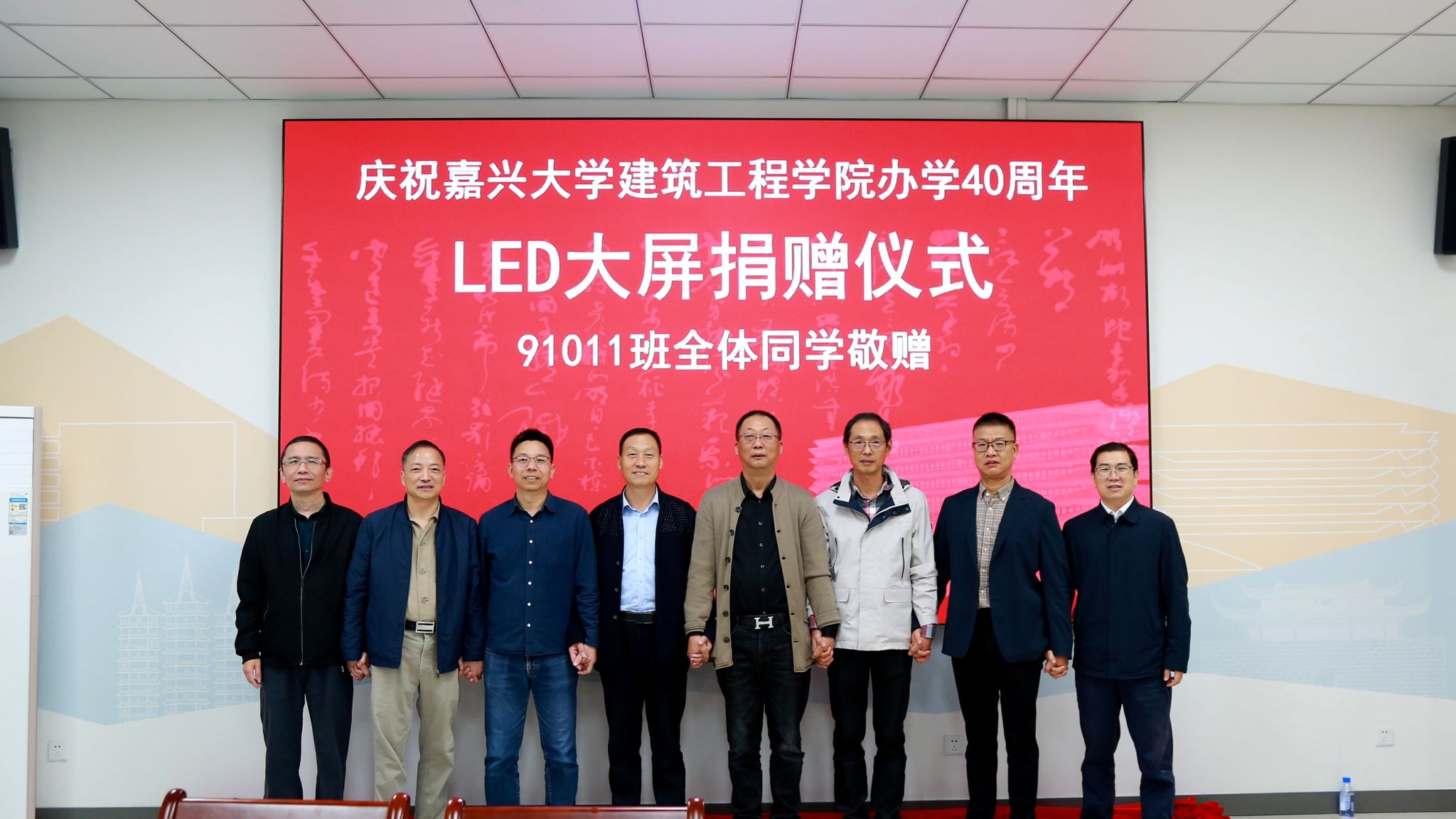 在做爱视频 迎来办学四十周年这一重要时刻,工民建91011班全体同学自发组织筹资,向学院捐赠了一块LED大屏,为院庆献上厚礼。